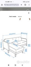 Vendesi divano Ikea con penisola in ottime condizioni estetiche. Il divano è stato usato poco, sempre trattato con cura ed è privo di difetti. È già smontato con tutti i suoi pezzi originari e istruzioni per il montaggio. Vendo a metà prezzo rispetto al costo del nuovo
