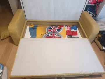 divano contenitore su misura comprato da Man casa con abbassamento schienale manuale che permette l'abbassamento del letto a scomparsa . Nuovo ha un valore di 1000,00 euro.