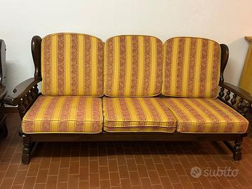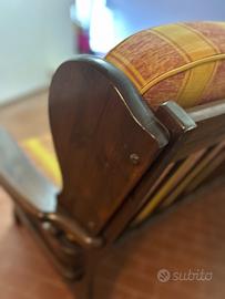 Bellissimo divano e 2 poltrone in legno massiccio color noce con cuscini perfetto