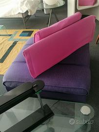 Divano Avedon dis. arch. M. Lipparini per Saporitiitalia cm 225 x95 con mensola schienale curva laccata poliestere nero lucido cm 260 e cuscini schienale in tessuto, piu poltrona con meccanismo di scorrimento schienale cm105x95, in buonissime condizioni