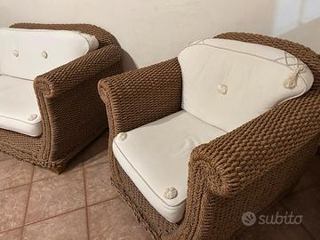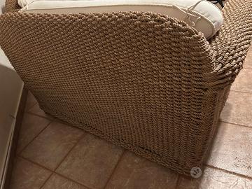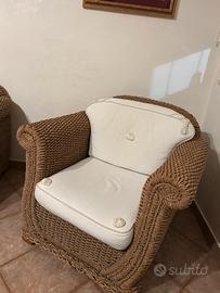 Divano 2 posti più Poltrona 1 posto in midollino lampakanay, entrambi a seduta fissa realizzato con intreccio a mano.