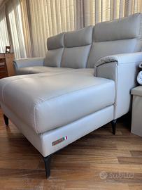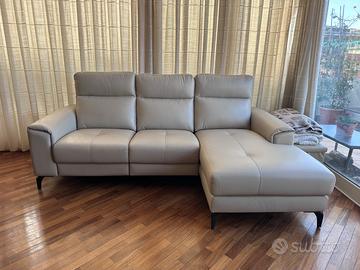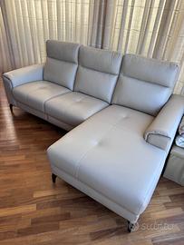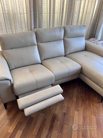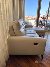 Divano di Poltron e Sofà in pelle colore tortora chiara, come nuovo!! 3 posti, uno con relax e uno con chaise longue. Vendo per inutilizzo.