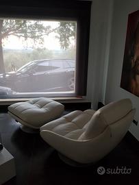 Vendo poltrona chaise lounge girevole in pelle pieno fiore con struttura il legno massello e base in alluminio nero lucido firmata Chateau D'Ax. Non rispondo ad affaristi o sognatori.