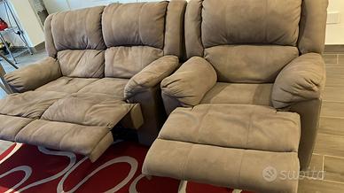 Stoffa in nabuk, gambe reclinabili e schiena stendibile, tenuti in ottima condizione.