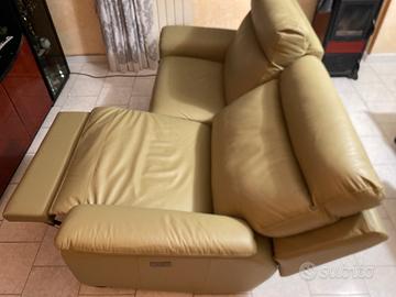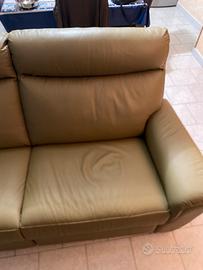 Vendo divano in pelle , poltrone sofà reclinabile elettronicamente lunghezza 2 metri colore verde completo di aditivi in dotazione per il trattamento del tessuto in pelle.