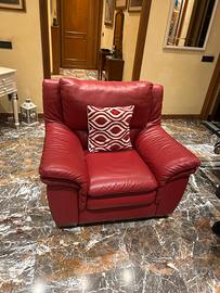 Vendo divano e poltrona Natuzzi originali, realizzati in vera pelle di alta qualità, colore rosso ciliegio, elegante e di grande impatto estetico.