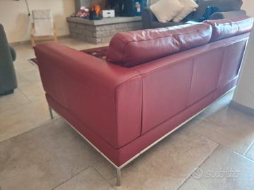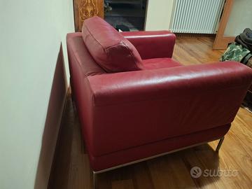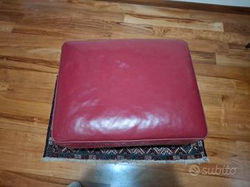Divano in pelle rosso lunghezza 2,05 m larghezza0, 92 m altezza 0,82 m. Poltrona lunghezza 0,90 m larghezza 0,90 m altezza0, 82 m. Puff lunghezza 0,75 m larghezza0, 75 m altezza 0,40m