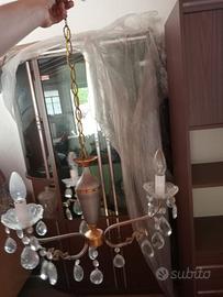 Lampadario vintage con elementi in vetro/cristallo, elegante e scenografico