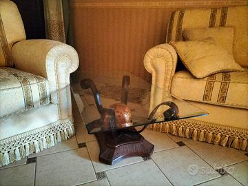Set divano, poltrona e tavolino in vetro come nuovi