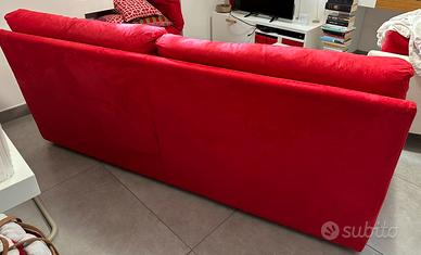 Vendo divano 3 posti, Poltrone e Sofà in simil alcantara rosso. Il divano si presenta in ottime condizioni, con normali segni di utilizzo. Si potrà ritirare da metà aprile in poi.