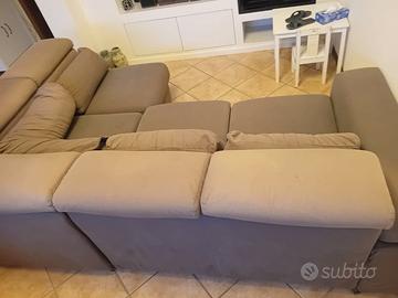 Divano usato con poggiatesta testa regolabile, scise long con contenitore staccabile, scomparto per allungare la seduta, tutto sfoderabile.