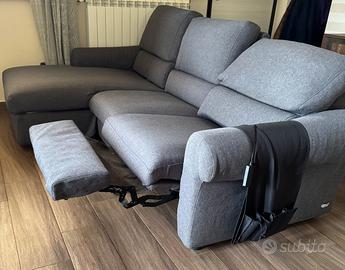 Come da titolo vendo divano grigio in tessuto lavabile poltrone e sofà. Divano in ottime condizioni con chaise longue e movimento relax elettrico.