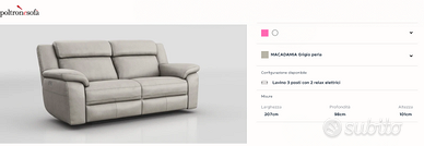 Divano 3 posti con relax elettrico completamente sfoderabile