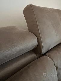 Vendo per cambio residenza, divano con penisola sinistra tenuto bene, piccolo difetto al bracciolo destro contenitivo, presente un lasco che non determina il suo funzionamento.
