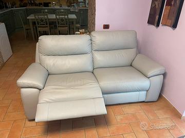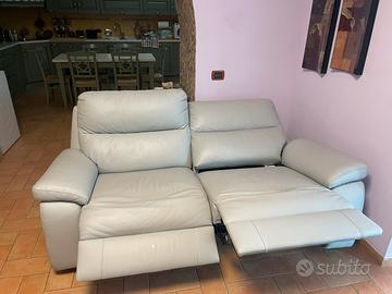 Divano Poltrone e Sofà in pelle. Schienali elettrici, colore carta da zucchero. Misure : Larghezza 208cm Profondità 99cm Altezza 102cm