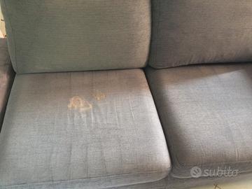 Presenta una macchia di amuchina su una delle sedute, come da foto, che ha scolorito una parte. Il divano è usato. La struttura è come nuova.