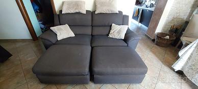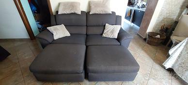 Divano 2 posti "Poltrone e sofá". Tessuto impermeabile anti-macchia. Corredato di 2 pouf in tinta e cuscini antimacchia.