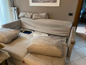Divano 4 posti un po macchiato ai lati ma in buono stato non rotto e con 3 contenitori anche a letto