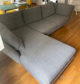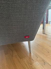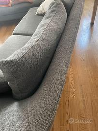 Vendo divano poltrone e sofà, modello “Batti d’ali”, completamente sfoderabile. Tenuto in ottime condizioni. Colore grigio chiaro. Il divano è composto da due moduli che si attaccano/staccano e sono facili da trasportare. Vendo anche tre cuscini rettangolari piccoli in coordinato con il divano, di colore grigio più chiaro. Rivestimento cuscini piuma d’oca.