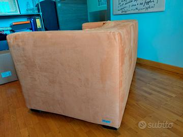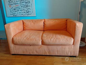 Vendo divano due posti Poltrone e Sofà, in alcantara, arancione, tenuto benissimo, seduta perfetta, usato pochissimo. Presenta un piccolo difetto nella parte anteriore come da immagine.