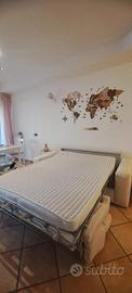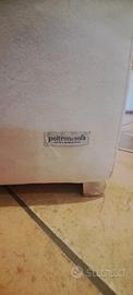 Divano letto 3 posti poltrone e sofà, colore bianco luna, misure 200x90x97 Completamente sfoderabile e lavabile con schienale porta cuscini, rete e materasso matrimoniale compreso, completo di pouf misure 60x90 nessun difetto.