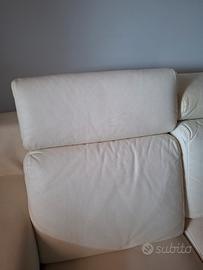 Vendo divano in tessuto sintetico (similpelle) color bianco sporco 3 posti con due relax ai lati e poggia testa reclinabili. Anche una poltrona (68x87) con cuscino annesso per formare chaise long. Lungo 220 profondo 93 alto 90 Completamente sfoderabile e possibilità di acquistare secondo rivestimento