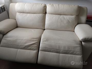 Vendo bellissimo divano poltrone e sofà in vera pelle, color panna con 2 sedute relax elettriche. Il tutto è perfettamente funzionante e in ottime condizioni, senza graffi o segni. Misure 2 metri di lunghezza x 90 cm. Di profondità. Togliendo la barra di sostegno dietro volendo si divide in 2 moduli. Il prezzo è leggermente trattabile. Ritiro comodo al piano terra in zona San Donato (Meraville) Bologna.