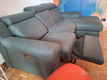 Divano Poltrone & Sofà modello Berceto verde scuro in microfibra, pagato 1730€ al momento dell'acquisto. Penisola a sinistra(stando seduti sul divano), movimento relax elettrico sul lato destro. Il divano è praticamente nuovo, acquistato a Novembre dell'anno scorso, presenta solo qualche piccola imperfezione. In foto la descrizione e le misure precise. Il divano ha ancora la garanzia di 5 anni.