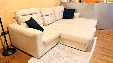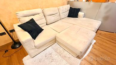 Divano (poltrone&sofà) Colore Beige chiaro Tessuto alcantara Misure 240x160cm profondità (con penisola e puff)