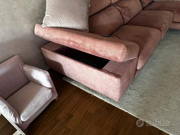 Vendo bellissimo divano marchio poltrone&sofa con 2 rivestimenti, uno rosa antico e uno grigio, in ottimo stato con penisola da un lato e poltrona relax dall’altro. Misure 310 cm x 105 lato poltrona relax e 190 lato penisola. Facilmente sfoderabile per il cambio di rivestimento.