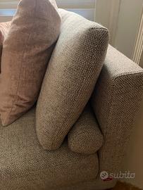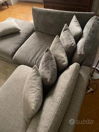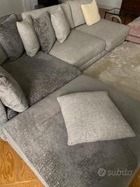 Divano Incanto d’Artista di Poltrone e Sofà. Composto da 6 moduli interscambiabili, 1 angolo, 3 schienali e 2 puff. Grigio e rosa come da fotografie. 8 cuscini compresi. Condizioni ottime, usato 6 mesi.