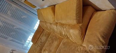 Divano Poltrone & Sofà giallo. Il.divano è divano letti, ha il contenitore sotto la penisola e i poggiatesta regolabili. Si divide in due parti per il trasporto. Ritiro e trasporto a carico dell'acquirente. Larghezza massima 250 cm, larghezza penisola 100 cm. Profondità 110 cm, profondità penisola 180 cm.