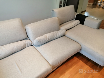 Divano Poltrone Sofà con chaise long in tessuto, cuscini schiena regolabili, 4/5 posti con sedute ampie e profonde, acquistato nuovo nel 2019 a 1400 euro, vendo per motivi di spazio