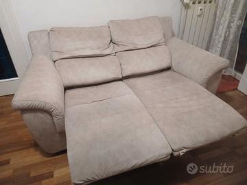 Vendo per trasloco divano 2 posti di poltrone sofà. Possibilità di Chaise longue con pulsanti automatici. In buone condizioni. Tessuto simil pelle. Sfoderabile e lavabile.