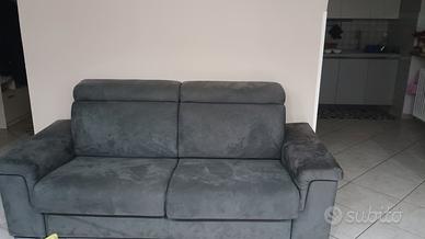 Divano due posti Poltrone Sofà. Lunghezza 2 metri e venti. Non presenta imperfezioni. Colore grigio scuro. Tessuto tipo velluto. facile da pulire. comodo.