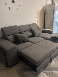 Vendo divano poltrone Sofà grigio scuro comprensivo di 2 pouf grigio in velluto. Il divano ha cassetto scorrevole che si tira in su come da foto, diventando rettangolare.