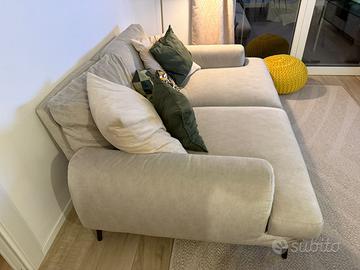 Divano poltrone e Sofà acquistato a fine 2022. In vendita per cambio casa. Completamente sfoderabile. Come da foto i cuscini poggia schiena si possono spostare in due posizioni per modificare la seduta. Lunghezza 200cmx145larghezza. Perfette condizioni.