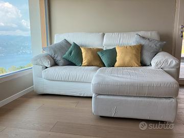 Vendo divano poltrone sofà con isola meccanismo poggiatesta , tenuto in ottime condizioni .colore bianco Misure come da disegno Eventuale Possibilità di trasporto zona garda /verona.