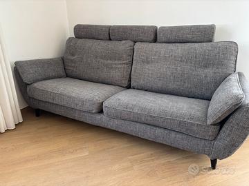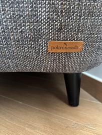Divano 4 posti come da foto, completo di pouf, 3 poggiatesta amovibili e 1 fodera di ricambio dello stesso rivestimento per consentire il lavaggio del divano. Completamente sfoderabile e lavabile in lavatrice con lavaggio delicato.