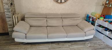 Divano PoltroneSofà bicolore (similpelle bianca - microfibra grigia) con poggiatesta e braccioli regolabili, piedi in metallo. Completo di pouf. Il divano è in buonissime condizioni. Lo vendiamo per passare ad un divano letto. Ritiro sul posto a carico dell'acquirente.