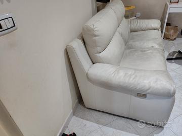 divano tre posti Poltronesofà con alzata elettrica, struttura perfetta la pelle un po' rovinata alle sedute, colore panna. Non spedisco bisogna venirlo a prendere.