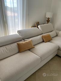 Vendo divano poltronesofa , modello frigento, praticamente pari al nuovo comprato 4 anni fa, nessun difetto,nessuna macchia con poggiatesta regolabili singolarmente e piedini in legno color noce. Potete vedere il modello uguale ancora esposto al negozio alle porte di catania. Le misure sono 3,20 mt di lunghezza , le sedute comodissime da 60 cm e l’isola lunga 2 mt. Ottimo affare lo vendo a metà del prezzo di acquisto. Trasporto a carico dell’acquirente