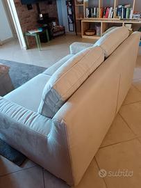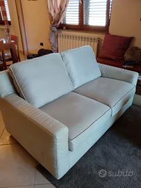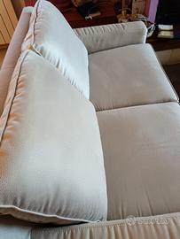 Cuscini seduta doppia densità: anima in poliuretano espanso densità 30 Kg/mc, ricoperta con lastra in poliuretano espanso densità 25 Kg/mc. Cuscini schienale: in fibra di poliestere. Struttura portante: in legno massello di Abete e pannelli di agglomerato di particelle; sospensione su cinghie elastiche. Pari a nuovo , vendo per inutilizzo da quando è stato acquistato . Ritiro in zona