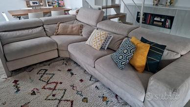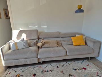 Divano Poltronesofà di alto livello acquistato nel 2020, tenuto con grande cura e in condizioni perfette, pari al nuovo. il divano e' composto da 3 moduli smontabili ed intercambiabili. Caratteristiche principali: Divano letto matrimoniale con materasso memory foam da 12 cm, comodissimo anche per uso quotidiano Schienali reclinabili a 90°, ideali per il massimo comfort Chaise longue reclinabile elettricamente tramite telecomandino Rivestimento in tessuto morbido e resistente, facile da pulire Colore: beige chiaro, adatto a ogni tipo di arredamento Dimensioni: Lunghezza totale: 300 cm Lunghezza chaise longue: 210 cm Profondità: 100 cm Divano elegante, spazioso e comodo