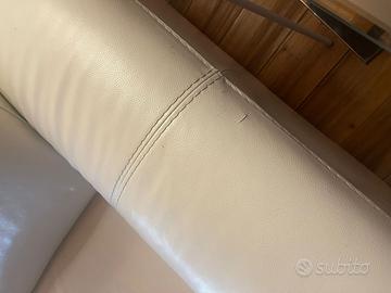 Vendo divano Poltronesofà in vera pelle chiara, modello relax con poggiapiedi estraibile e schienale reclinabile.
