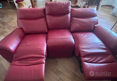 Divano Relax marca Poltronesofá 3 posti in pelle di color Bordeaux.