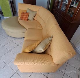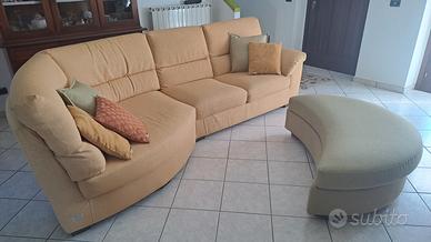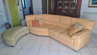 Cedo per trasloco ed assenza di spazi idonei, accogliente divano di produzione PoltroneSofà con penisola e pouf a mezzaluna che amplia e completa la parte tondeggiante frontale. Il pouf indipendente dalla struttura, aperto e spostato, offre altri spazi per appoggio o ulteriori sedute. Tessuto interamente sfoderabile e lavabile in lavatrice; lotus morbida ciniglia. Piedini montati in legno massello, volendo intercambiabili con altri, poco più alti in materiale plastico nero. Misure: altezza schienale cm. 95 - lunghezza mt. 2,70 - larghezza parte sinistra penisola mt. 1,80 (1,30 divano e 0,50 pouf) - larghezza parte destra con poggia braccio mt. 0,90. In REGALO i 5 cuscini in coordinato sempre di produzione PoltroneSofà come visibili in foto. Possibilità di consegna in aree limitrofe previo accordi. Prezzo trattabile, valutiamo eventuali vostre offerte.