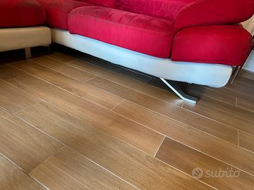Il divano è in tessuto microfibra: come si vede dalle foto è un po’ usurato, ma è completamente sfoderabile per lavaggi ed eventuali modifiche.