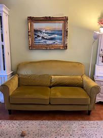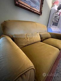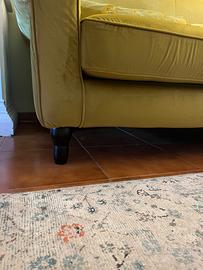 Vendo divano in tessuto di velluto liscio verde pistacchio, acquistato nel 2020, non ricordiamo modello ma tessuto e colore sono stati scelti su misura.