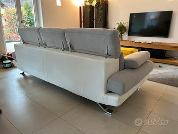 Divano marchio Poltronesofà modello Gimigliano 4 posti in tessuto grigio, misure 97x247x113 cm, con meccanismo schienale e braccio. Molto elegante e moderno, poggiatesta regolabili.